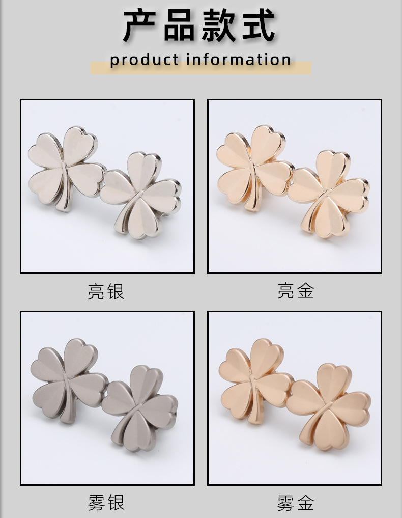 半小時前四叶草金属收腰扣 可拆卸免缝免钉收腰鈕扣 小對扣 牛仔裤收腰扣腰的神器 腰圍調節扣 固定扣 - 團購價10入組1199