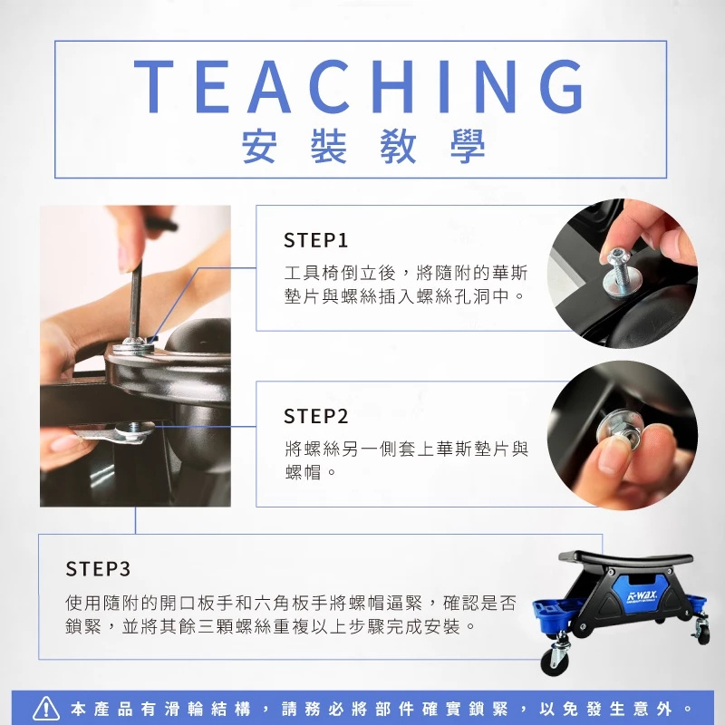 4分鐘前K-WAX TC 工具椅 台灣製造 堅固耐用 工作椅 美容椅 滑輪椅 滾輪椅 洗車椅 - K-WAX TC 工具椅+杯架組 * 1