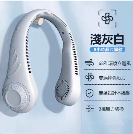2分鐘前【24小時連續使用超長續航】#掛脖風扇 #3檔自由調節長續航 免運費 貨到付款 - 【白色-無葉設計不饒發】【買一送一】