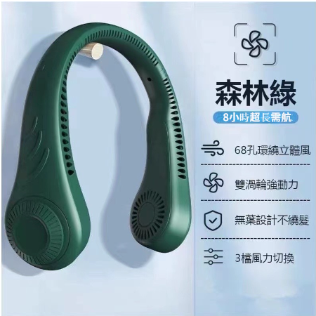 2分鐘前【24小時連續使用超長續航】#掛脖風扇 #3檔自由調節長續航 免運費 貨到付款 - 【綠色-無葉設計不饒發】【買一送一】