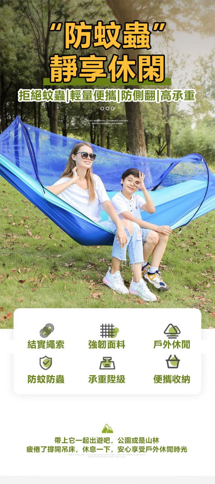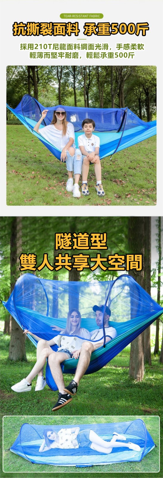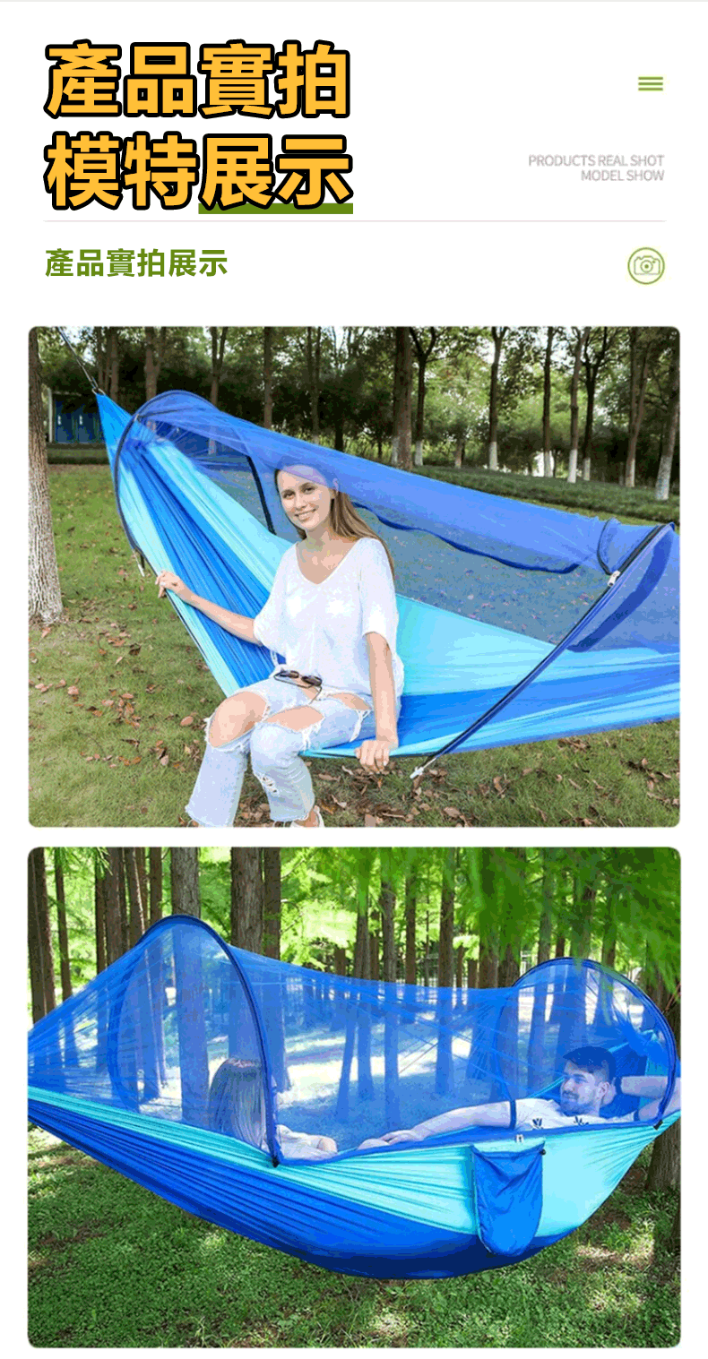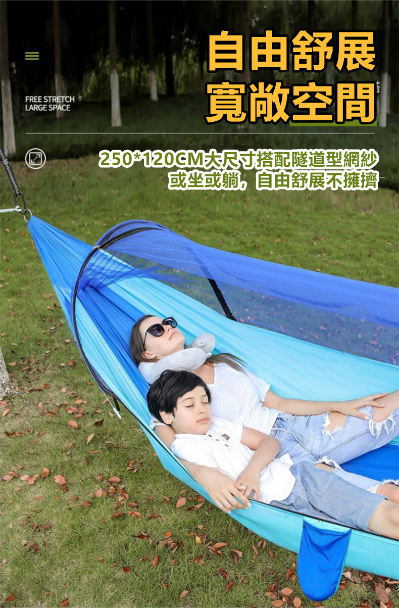 12分鐘前全自動速開戶外帶蚊帳吊床 - 【限時下殺】承重700公斤 速開蚊帳吊床【帶蚊帳 三米綁繩 8號扣】/2入組NT$2098