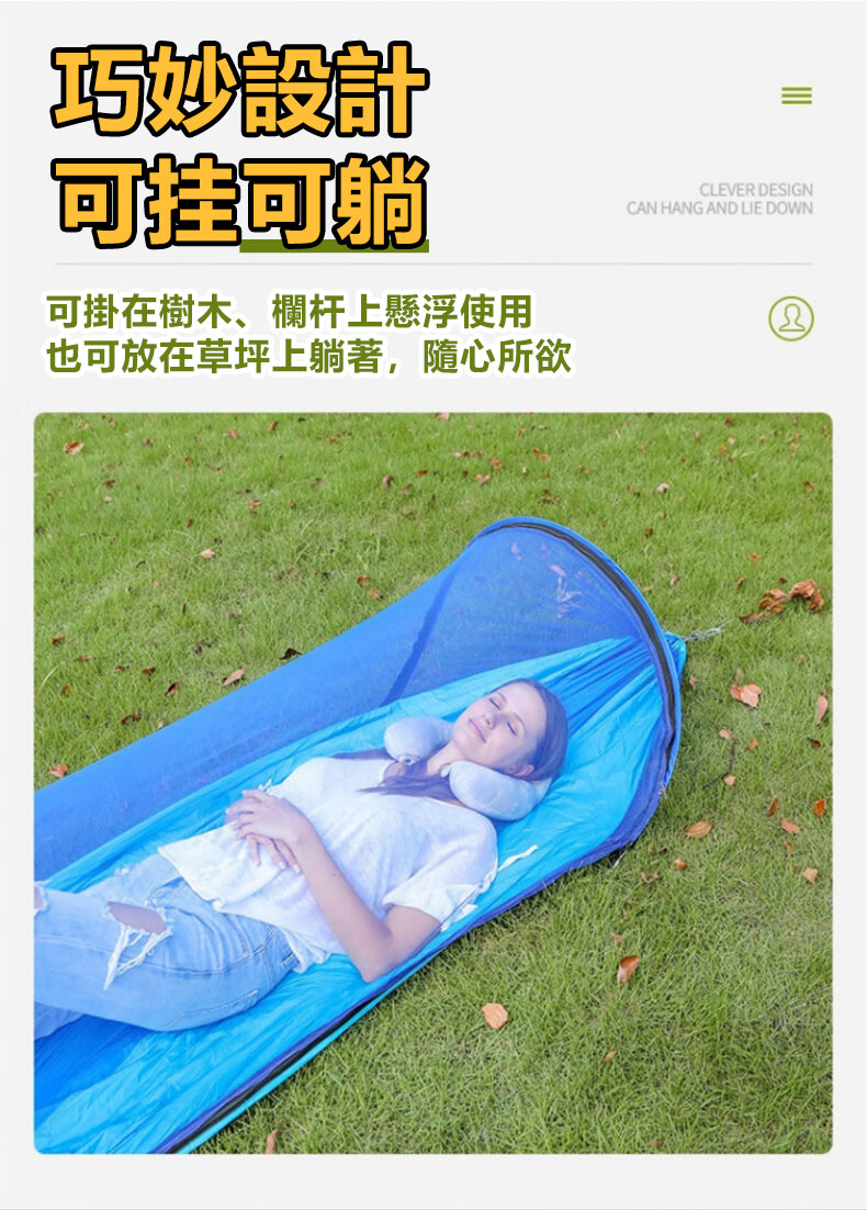 12分鐘前全自動速開戶外帶蚊帳吊床 - 【創意嘗鮮】承重700公斤 速開蚊帳吊床【帶蚊帳 三米綁繩 8號扣】/1入組NT$1298