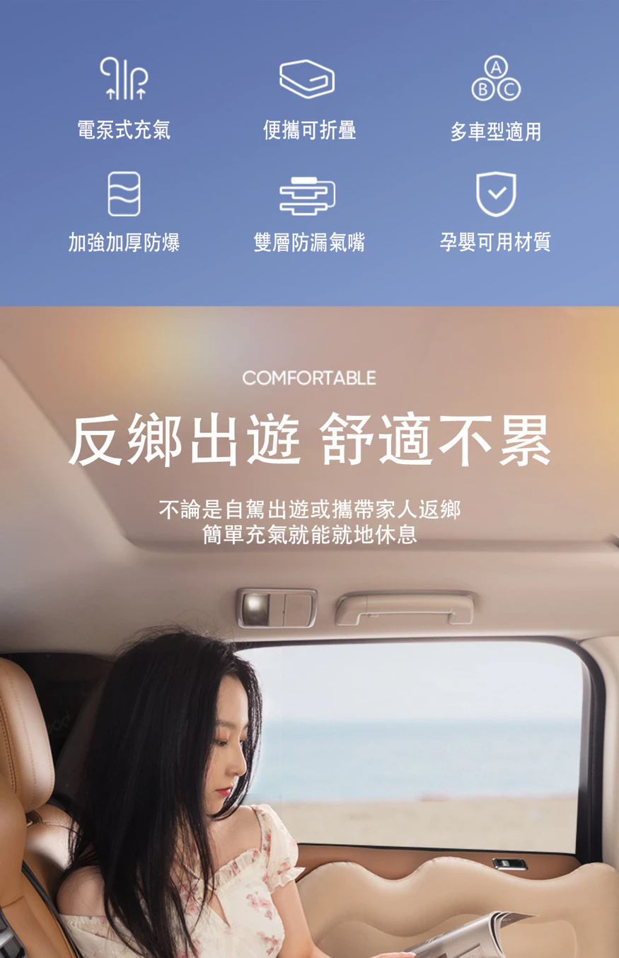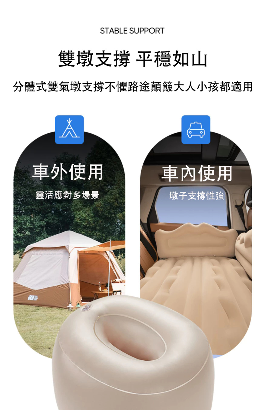 汽車充氣床墊【親膚植絨+全配套裝】 雙人充氣床墊 露營充氣床墊